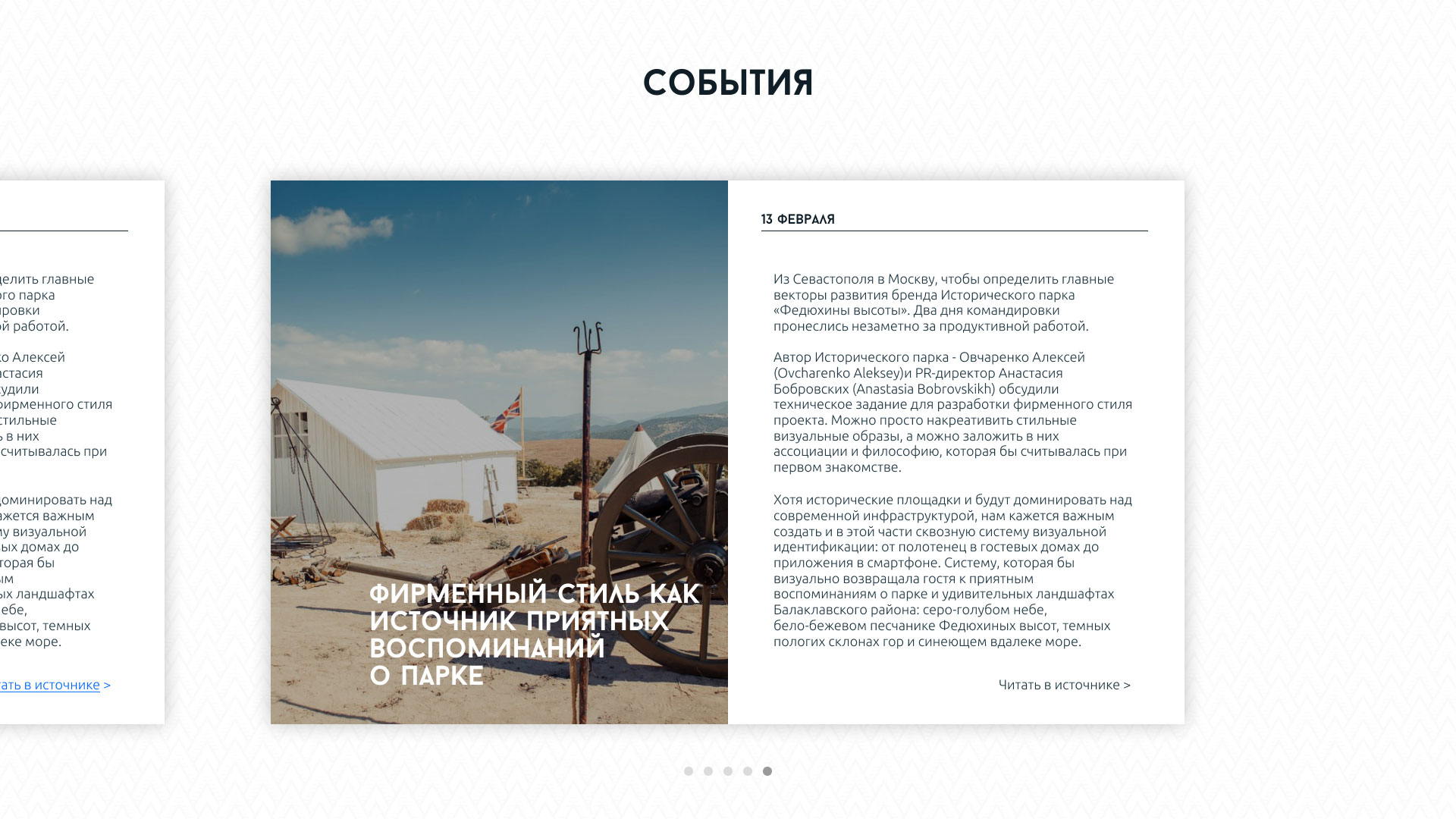 Так как парк ведет активную деятельность и проводит множество мероприятий. Отдельный блок сайта посвящен ленте событий и новостей, которая формируется не только редакторами сайта, но и может быть сконфигурирована для автоматического импорта материалов о парке из сторонних источников.