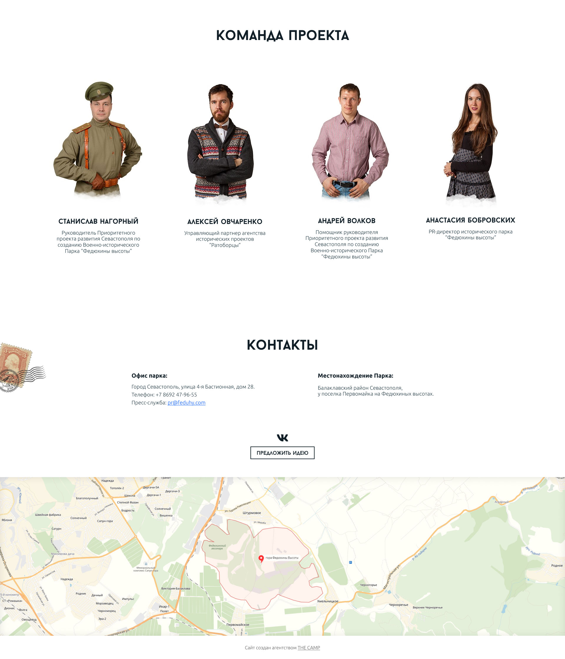Парк постоянно сотрудничает со множеством коммерческих и некоммерческих организаций и государственными структурами, поэтому для создания впечатления  открытости презентационная часть также завершается знакомством с руководителями проекта Федюхиных Высот.