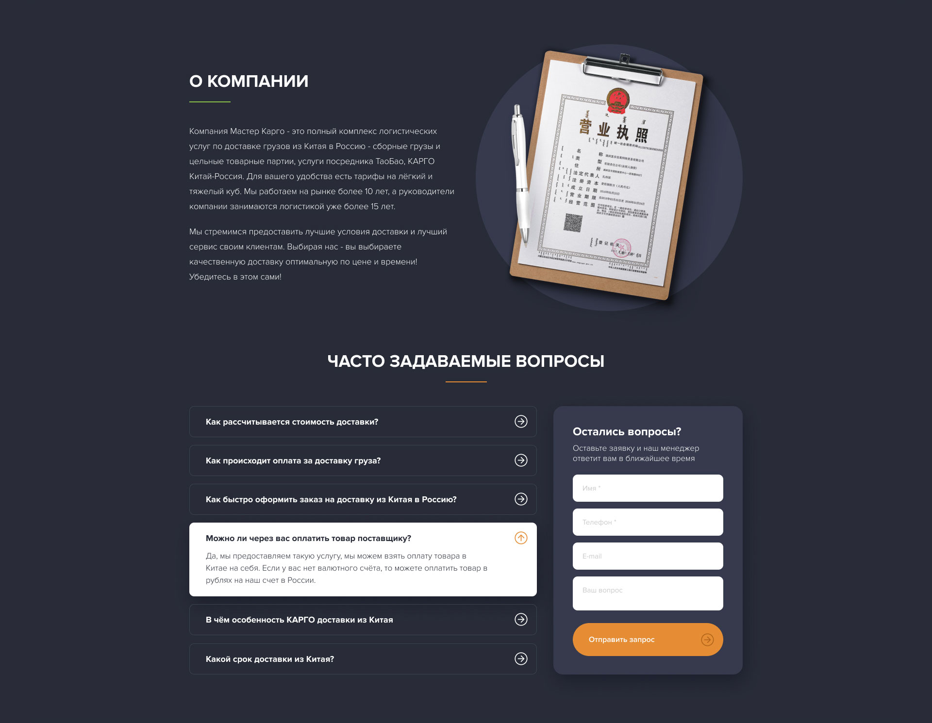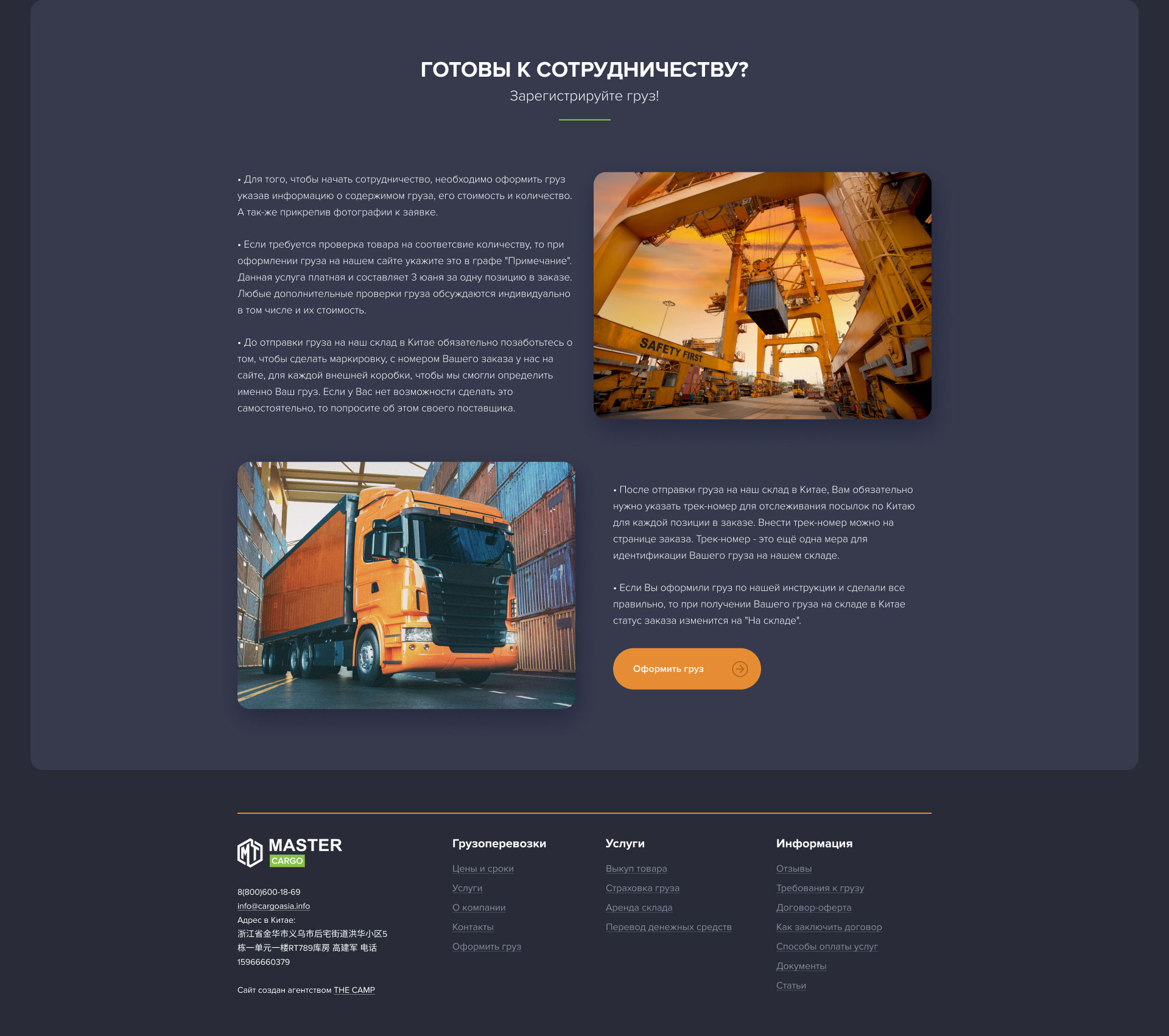Агенство разработало сайт и айдентику для компании, занимающейся перевозкой грузов из Китая в Россию.